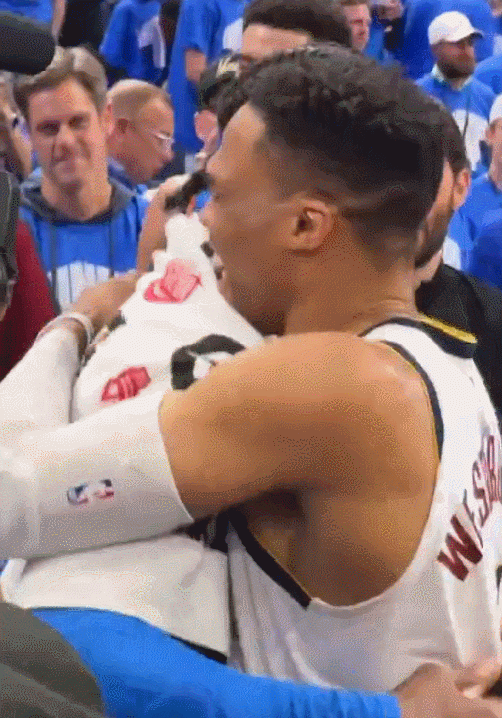 新老雷王说了啥🤝威少赛后和亚历山大拥抱致意笑得前仰后合😄