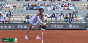 06月03日讯 法网1/4决赛郑钦文vs萨巴伦卡首盘双方战至6-5时,郑钦文发球局比分30-30,此时萨巴伦卡回球,裁判认定界内,郑钦文认为出界了。